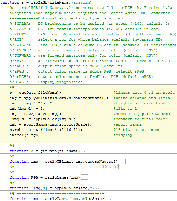 Technical note: the call used in Matlab to produce the images in this article is shown below, with the 7 basic steps in the yellow section[10]: